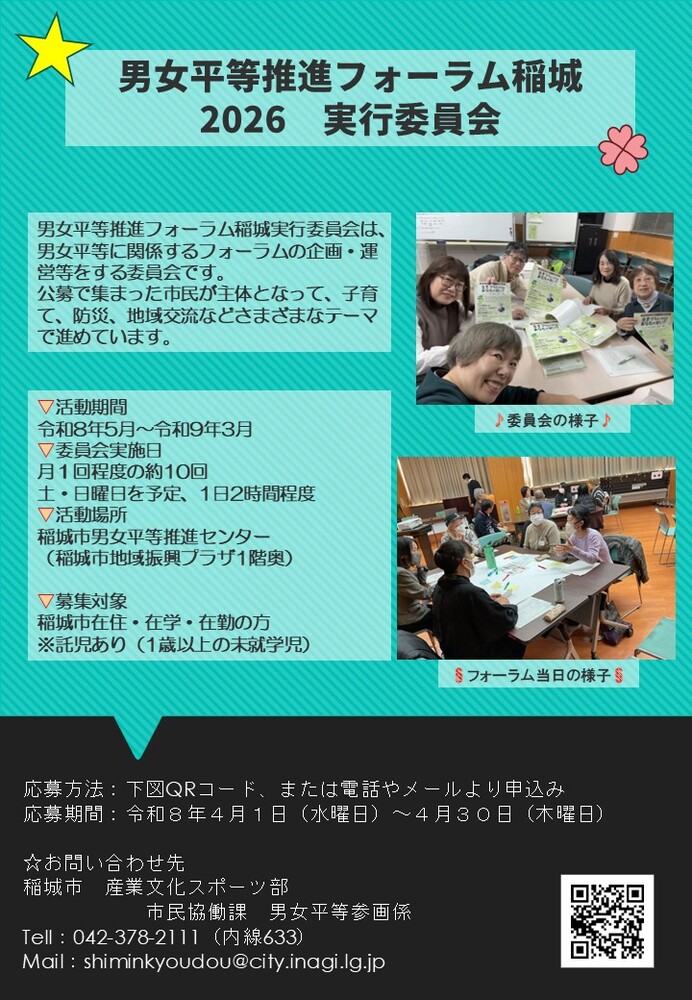Se están reclutando miembros del comité ejecutivo para el Foro de Promoción de la Igualdad de Género de Inagi