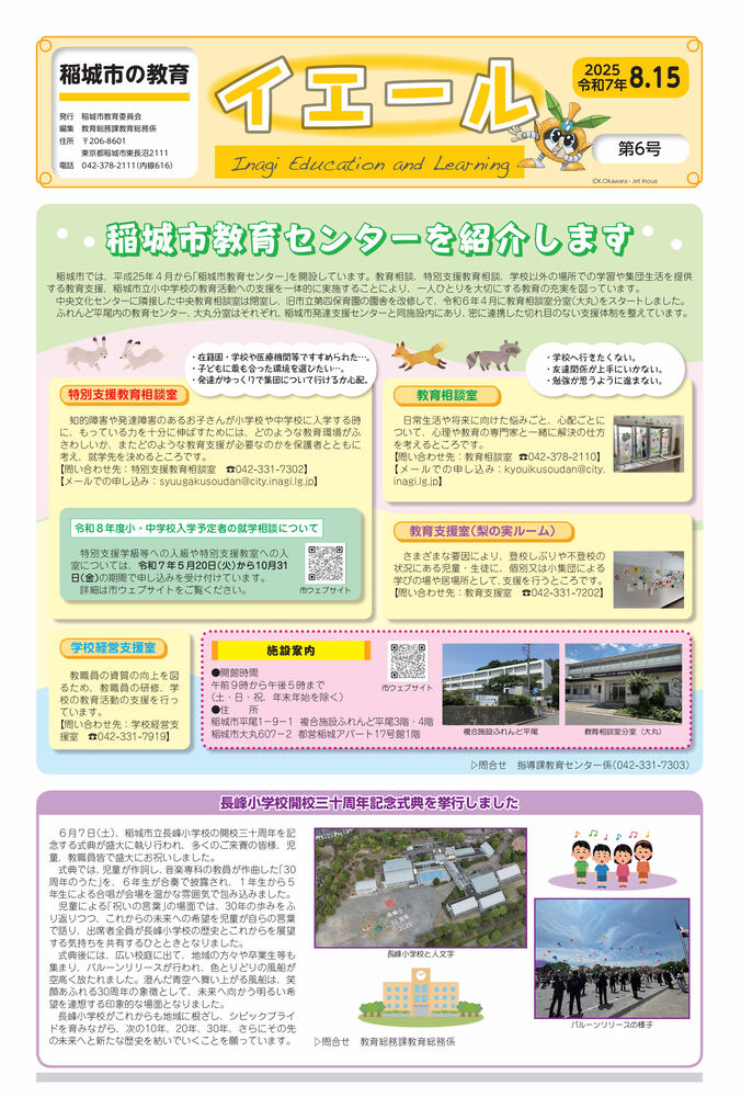 稲城市の教育「イエール」は、教育委員会の施策や学校教育等、教育行政に関する情報を掲載している広報紙です。